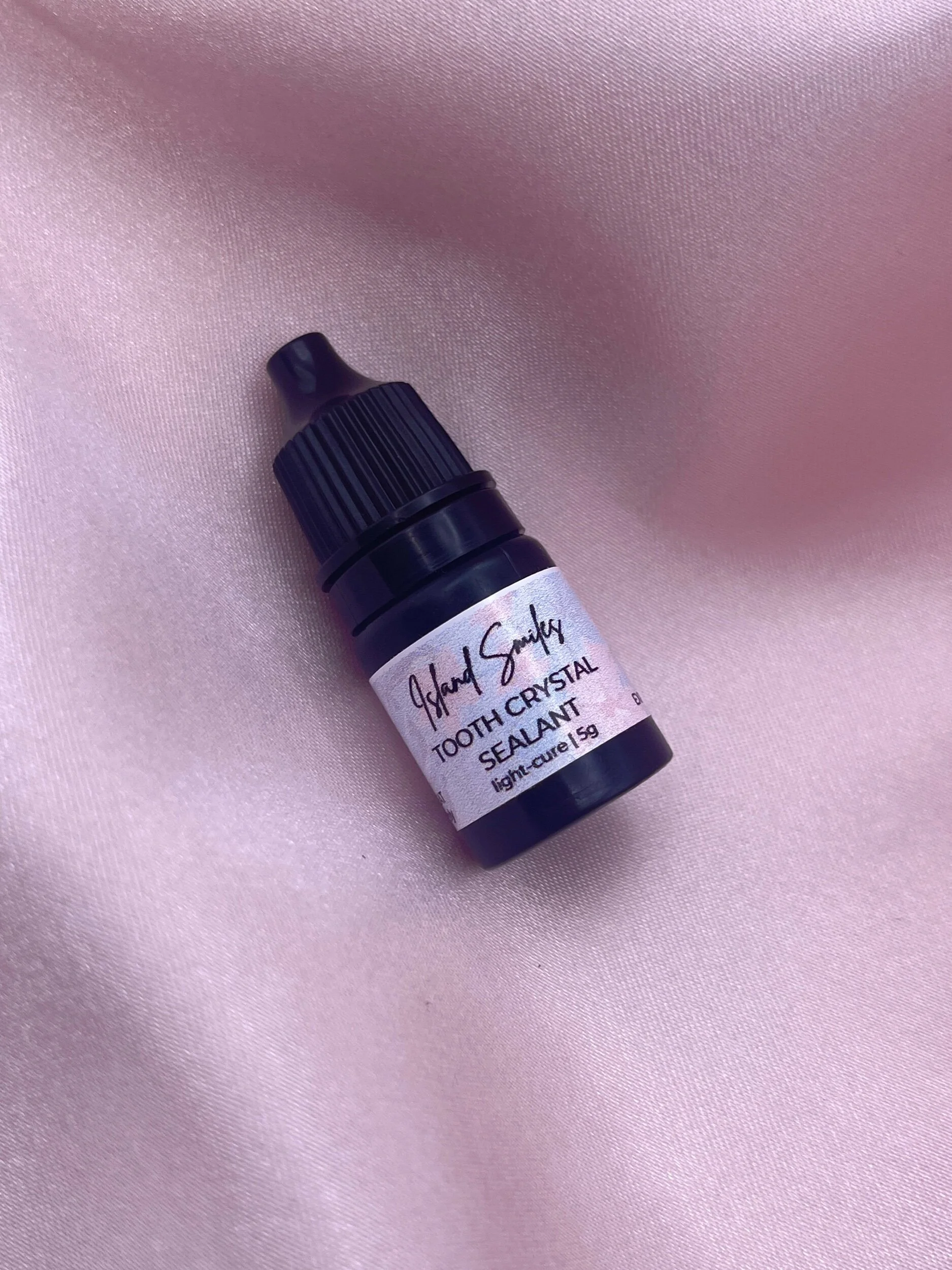 Our Tooth Crystal Adhesive is the composite, also known as resin, the third step in our tooth gem bonding system.